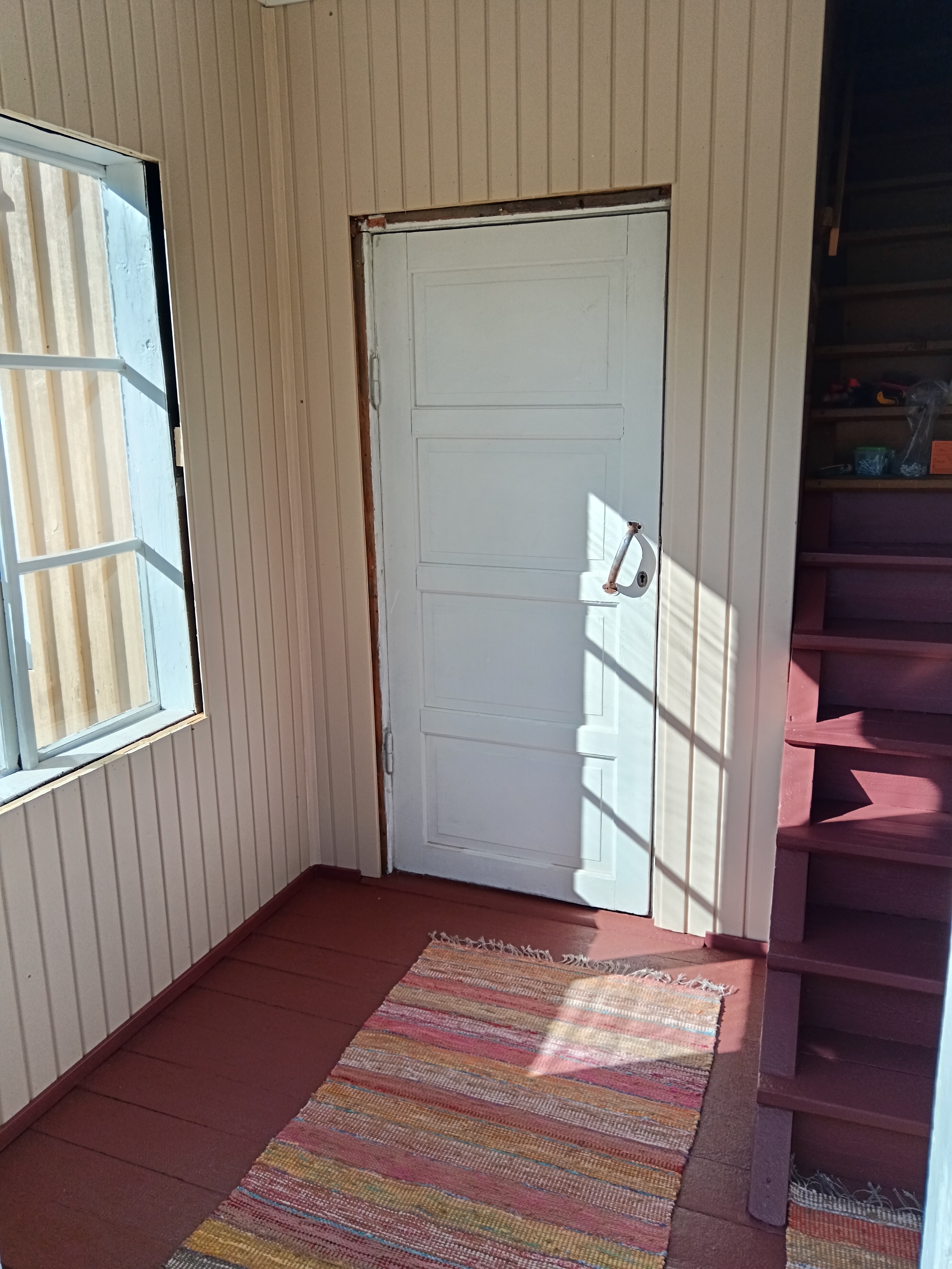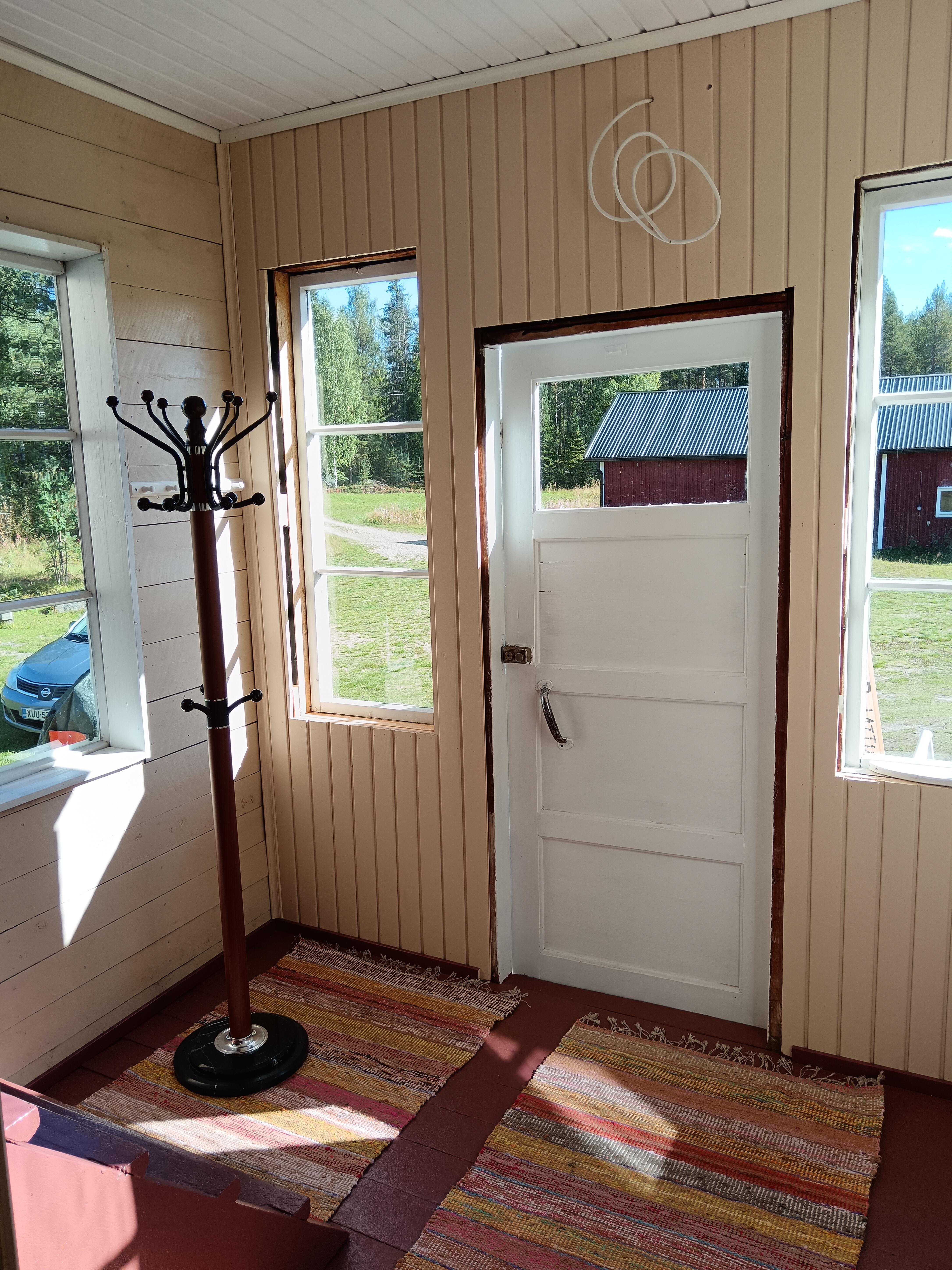 Vierelä elokuussa 2025. Uusittu kuisti toivottaa väen tervetulleeksi.